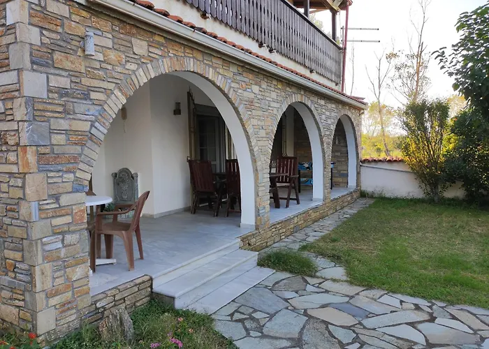 Willę wyposażono w udogodnienia do samodzielnego przygotowywania posiłków, w tym wyposażony aneks kuchenny oraz miejsce do jedzenia. Goście mogą również skorzystać z czajnika elektrycznego, lodówki i piekarnika, aby samodzielnie przygotować posiłek. Lotnisko Thessaloniki oddalone jest od willi o 135 km.